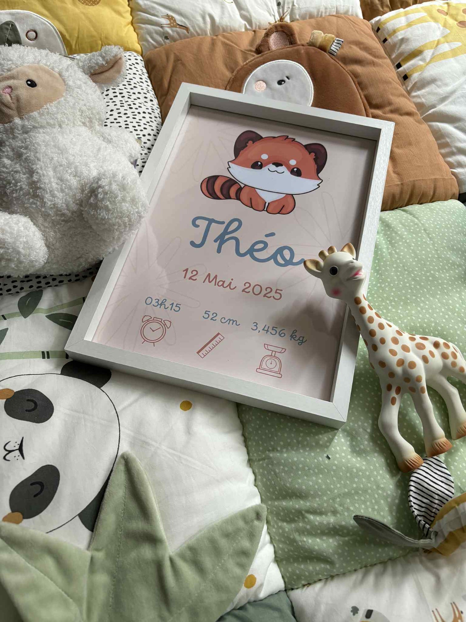 Découvrez nos affiches de naissance personnalisées, un cadeau unique et plein d’émotion pour célébrer l’arrivée d’un bébé. Format numérique à imprimer chez soi ou version encadrée prête à offrir. Créées avec soin, selon vos envies.